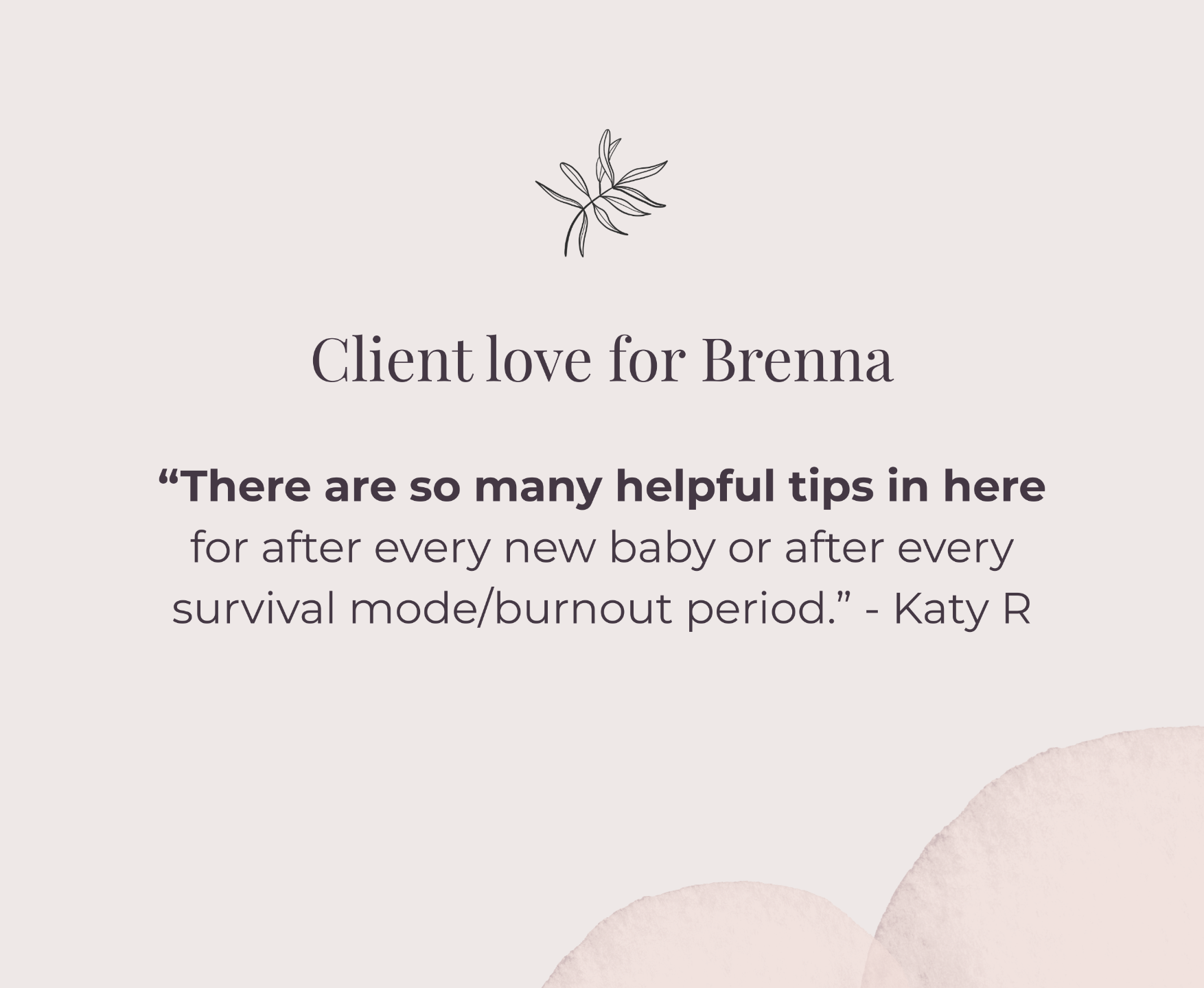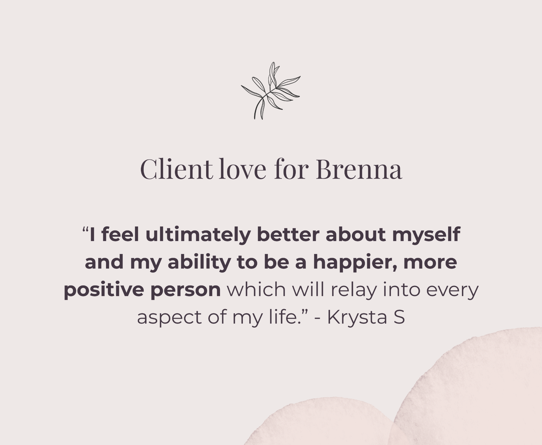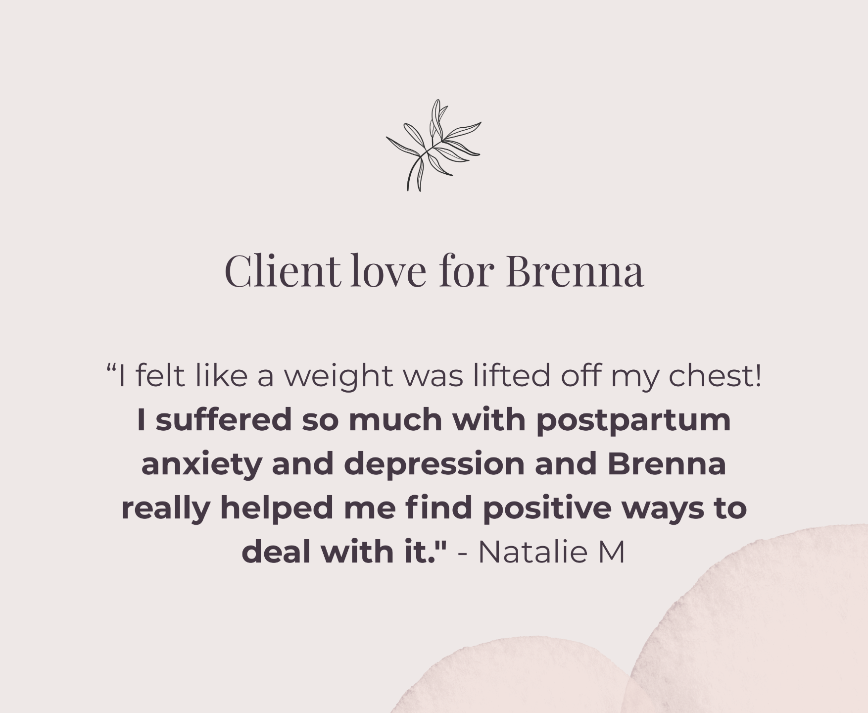 “I suffered so much with postpartum anxiety and depression and Brenna really helped me find positive ways to deal with it. It has helped me grow as a mother. Because of her I do not feel as overwhelmed and I have more patience when it comes to taking care of my daughter. I found so much comfort in knowing that she could relate to me and that I am not alone. I look forward to becoming a better more positive me!"